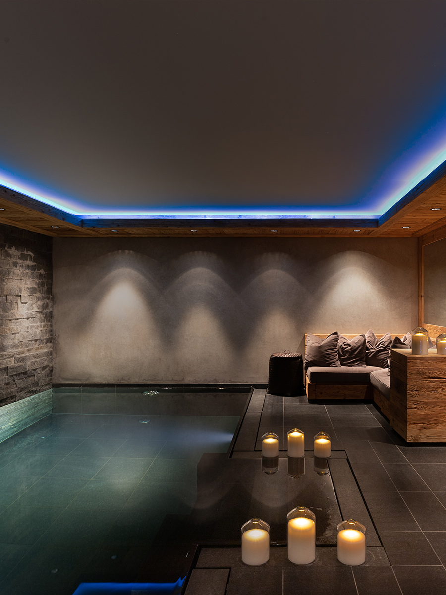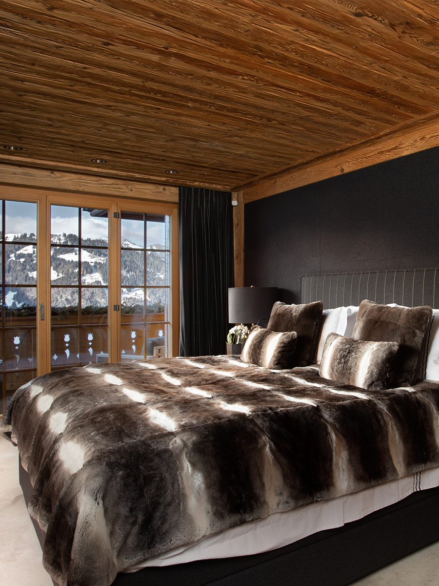 7 ensuite bedrooms with bathrooms and dressing including a master suite, 550 m² of living space with panoramic views over the Alps, just 150 meters from the ski slopes and 5 minutes from the center of Gstaad. Features an indoor pool, Hammam, cinema room, fitness area, bar and high-end sound system.